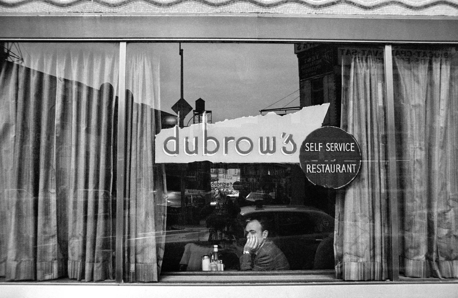 Viewers are transported to a neighborhood diner in Marcia Bricker Halperin’s series of people eating at the now-closed Dubrow’s Cafeteria locations in 1970’s, reconnecting with the experience of a communal space and a shared meal.